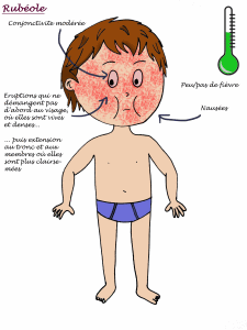 Éruptions qui ne démangent pas. D'abord au visage, où elles sont plus vives et plus denses puis, plus clairsemées au tronc et aux membres